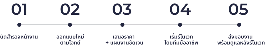 บริการครบทุกขั้นตอน ตั้งแต่การออกแบบ วางผัง เลือกวัสดุ ไปจนถึงงานตกแต่งเสร็จสมบูรณ์แบบ One-Stop Service
